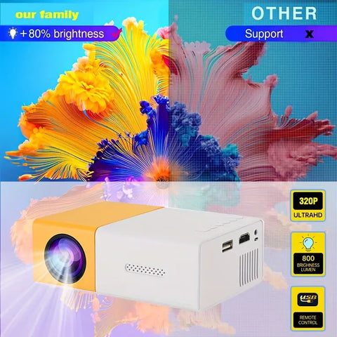 ¡Ahora es posible con el Mini Proyector Portátil, un dispositivo compacto, ligero y súper práctico que te ofrece una calidad de imagen impresionante y una experiencia envolvente como nunca antes!